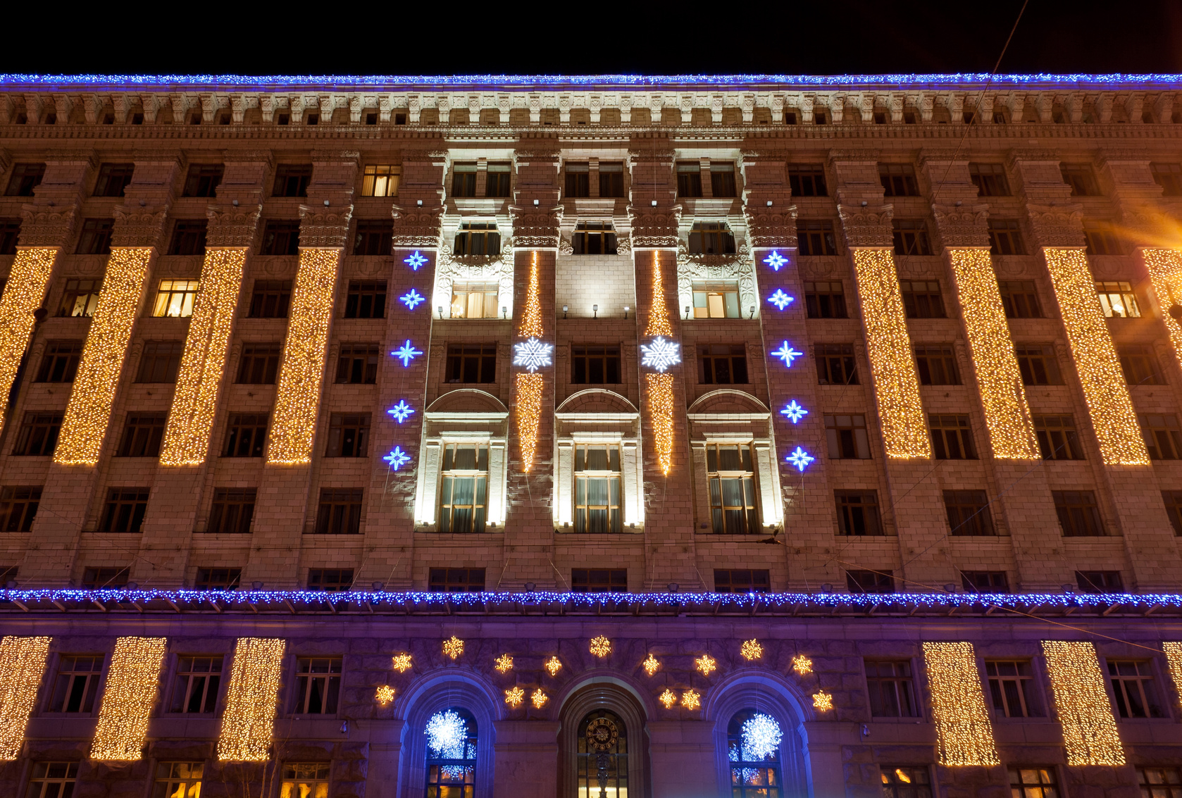 Kyiv City Hall illuminated at Christmas